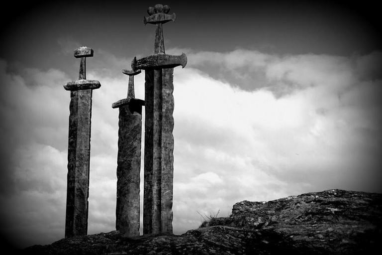 Trzy miecze wbite w skałę, jak twierdzą jedni upamiętniają króla Haralda oraz pokonanych wrógów. Inni jednak twierdzą, że symbolizują pokój, jedność i wolność.