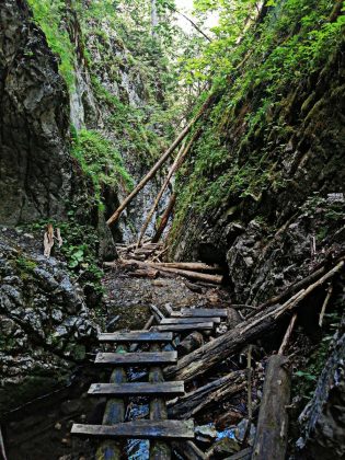 Wielki Sokół jest najdzikszym i najtrudniejszym wąwozem Słowackiego Raju. Idziesz do niego tak samo, jak na Piecky. Tuż za Autokempingiem skręcasz w lewo i idziesz. Po prostu. Nogi same cię prowadzą. Kiedy dochodzisz do znajomego miejsca w postaci odręcznie napisanego kierunkowskazu „Piecky” nie zatrzymujesz się. Idziesz prosto dalej.